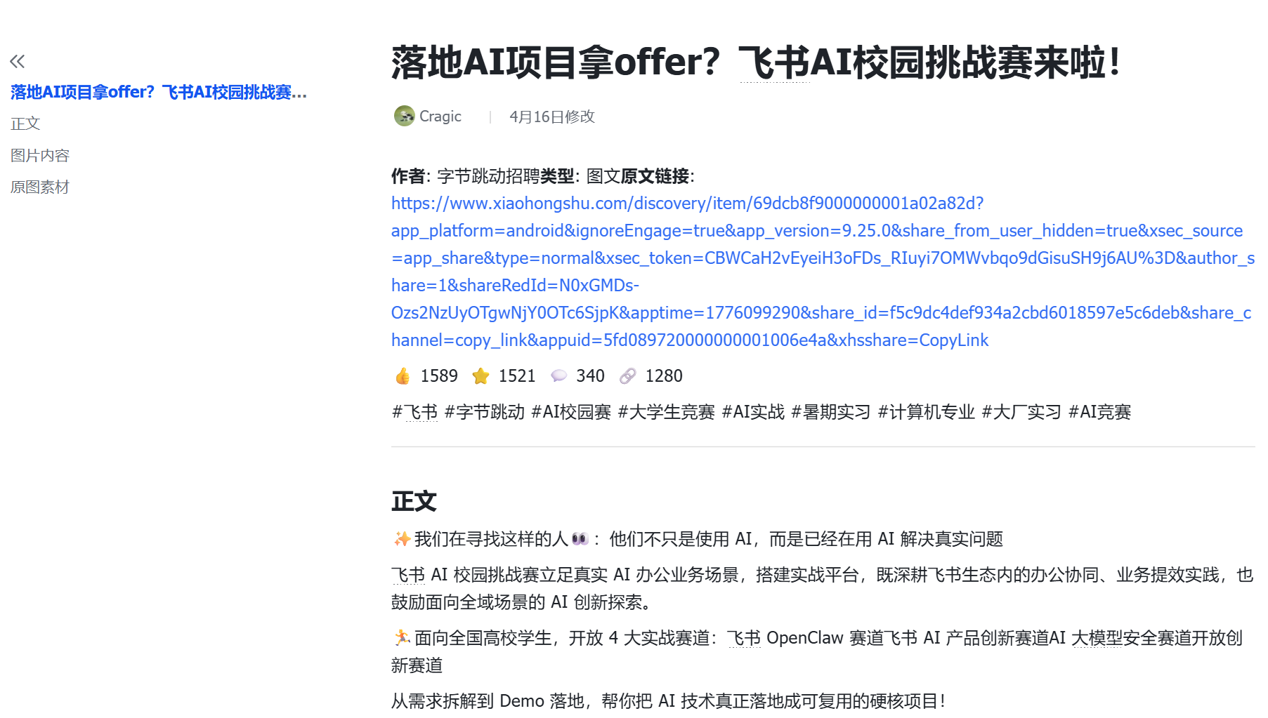 实现小红书到飞书的知识归档链路,通过多模态AI技术自动抓取和结构化解析内容